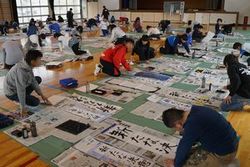 卒業式に向けて パンジーをプランタに植え替え(5年) 中之条高等学校にて H28.2.2 |